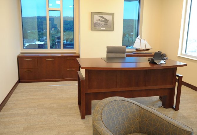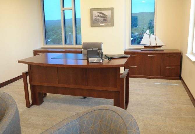 For the new offices of an institution featuring commanding views out over the Cayuga valley, CCN provided a Bespoke Boardroom Table as well as Private Offices and Executive Admin Stations. When the original source specified was unable to supply the Sit-To-Stand executive desks that had been specified, CCN stepped up to the plate and provided comparable units as well as corresponding credenzas and storage components.