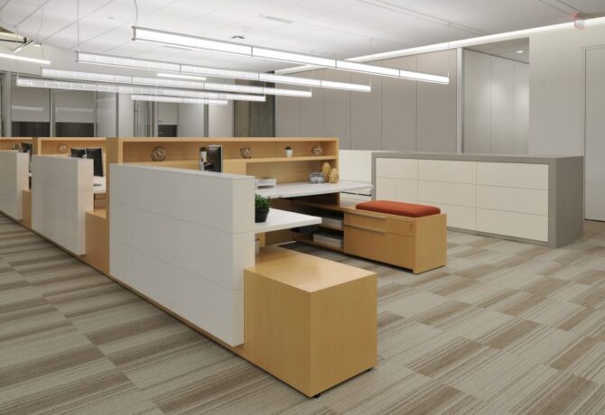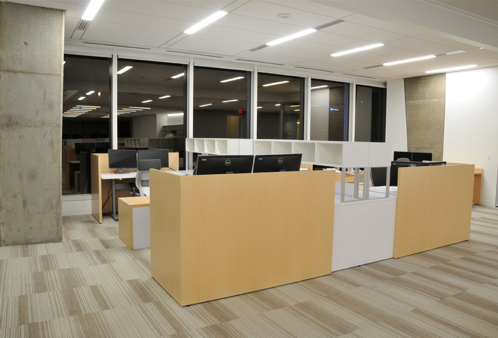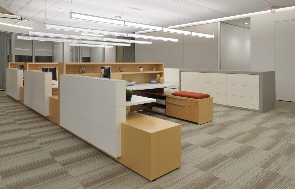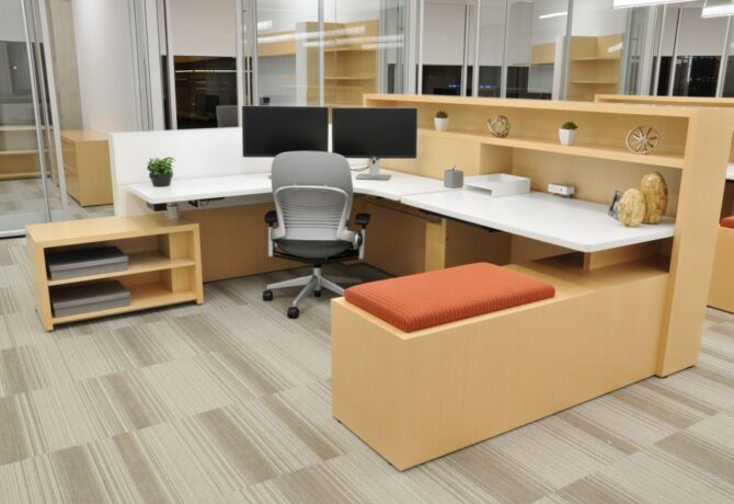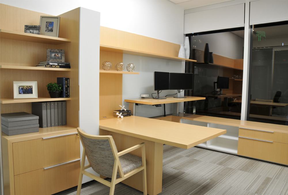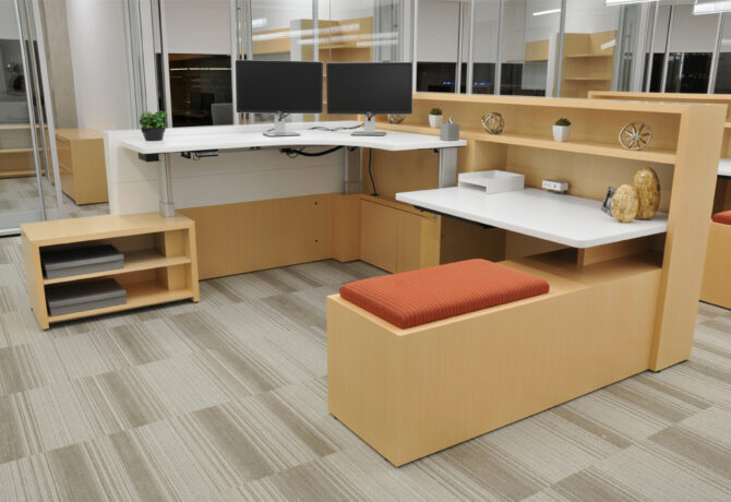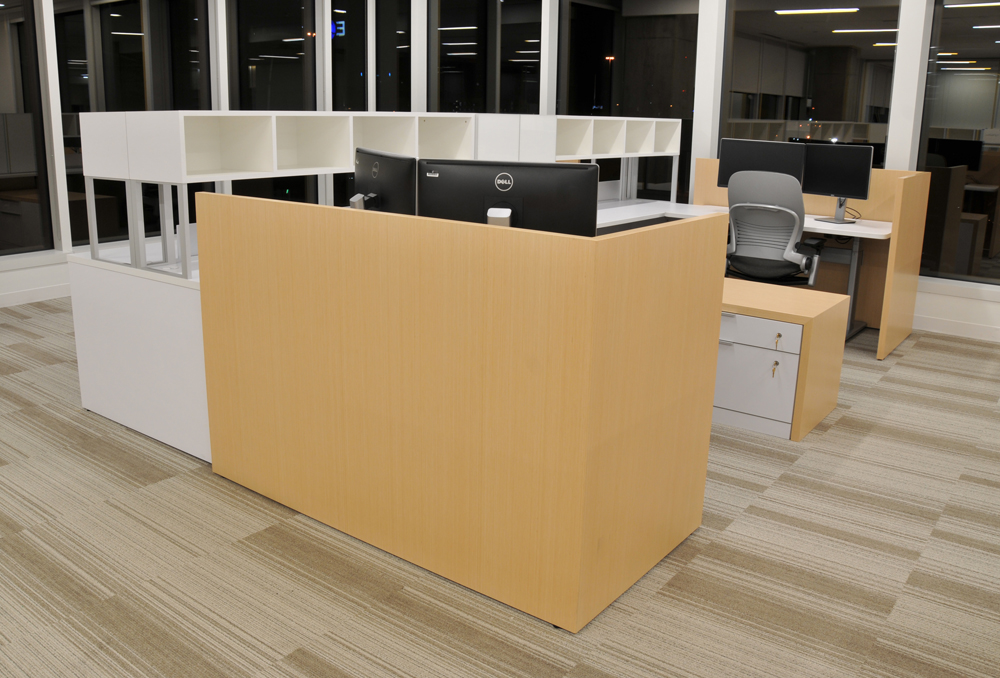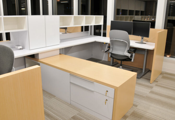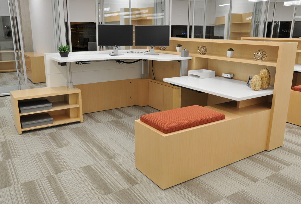 This project for Jackson Walker L.L.P., a prominent law firm in Dallas, is comprised of 228 offices spread over 4 floors and incorporates Bespoke L-shaped administrative stations as well as three different Private Office configurations. Both the Private Offices and Administrative Stations feature Sit-To-Stand work surfaces that are integrated into the lower cabinets.