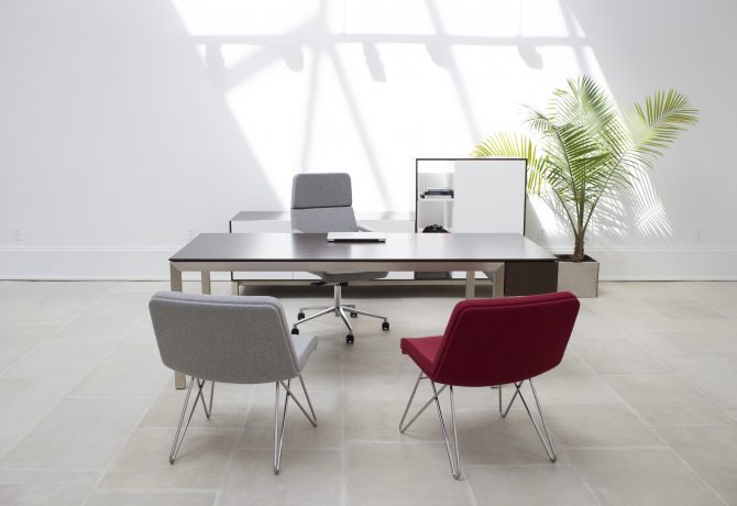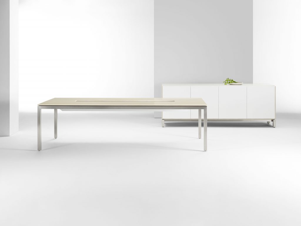 A cohesive product offering consisting of conference tables, open plan stations, and private offices, SITE was developed to break down barriers and promote collaboration. Featuring a refined steel support structure, the delicate visual scale belies a robuust structural integrity. Square section structural frames are available in white, brushed silver or custom powder coat finishes. SITE platform design: Patrick Fricke